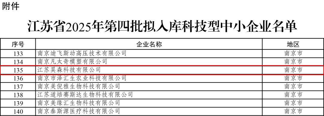 11 月 11 日,江苏省科学技巧厅公示了 2025 年第四批拟入库科技型中小企业名单,全省共 13069 家企业得手入选,其中南京地区入库企业达 2089 家。江苏昊森科技有限公司凭借在新能源换电限度的中枢技巧冲破与高成长性,得手踏进这份优质企业名单,负责迈入江苏省科技型中小企业梯队。
